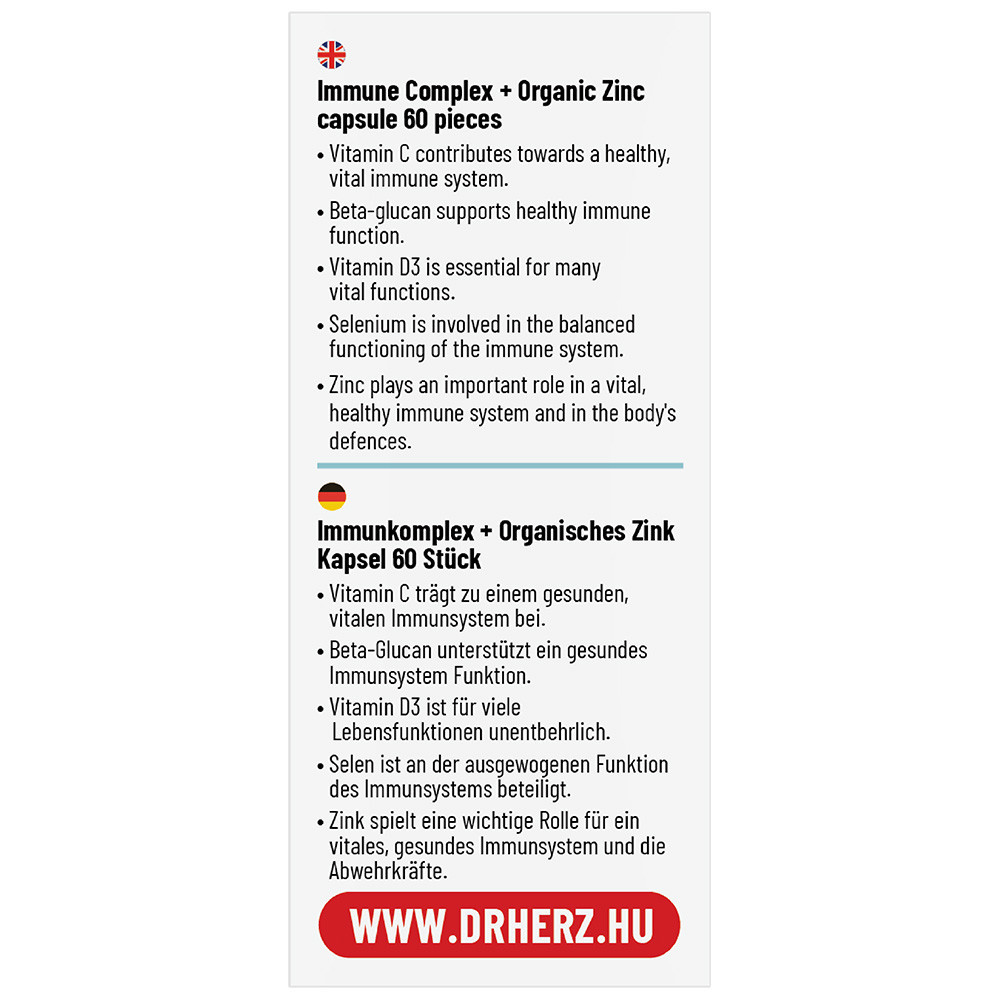 Komplex készítmény az immunrendszer erősítésére olyan értékes koncentrált növényi gyógynövény kivonatokkal, mint az Echinacea és a homoktövis. Az élesztőből kivont béta- glükánt (1,3 /1,6 D) extra magas, 70 %-os biológiai hasznosulás jellemzi. Hozzáadott jól hasznosuló, bioaktív szerves cinket, szelént tartalmaz, valamint a szervezetünk számára elengedhetetlen D-vitamint. A C-vitamin és a cink hozzájárul az immunrendszer normál működéséhez, a fáradtság és a kifáradás csökkentéséhez, a sejtek oxidatív stresszel szembeni védelméhez, a normál pszichológiai funkció fenntartásához, és az idegrendszer normál működéséhez.