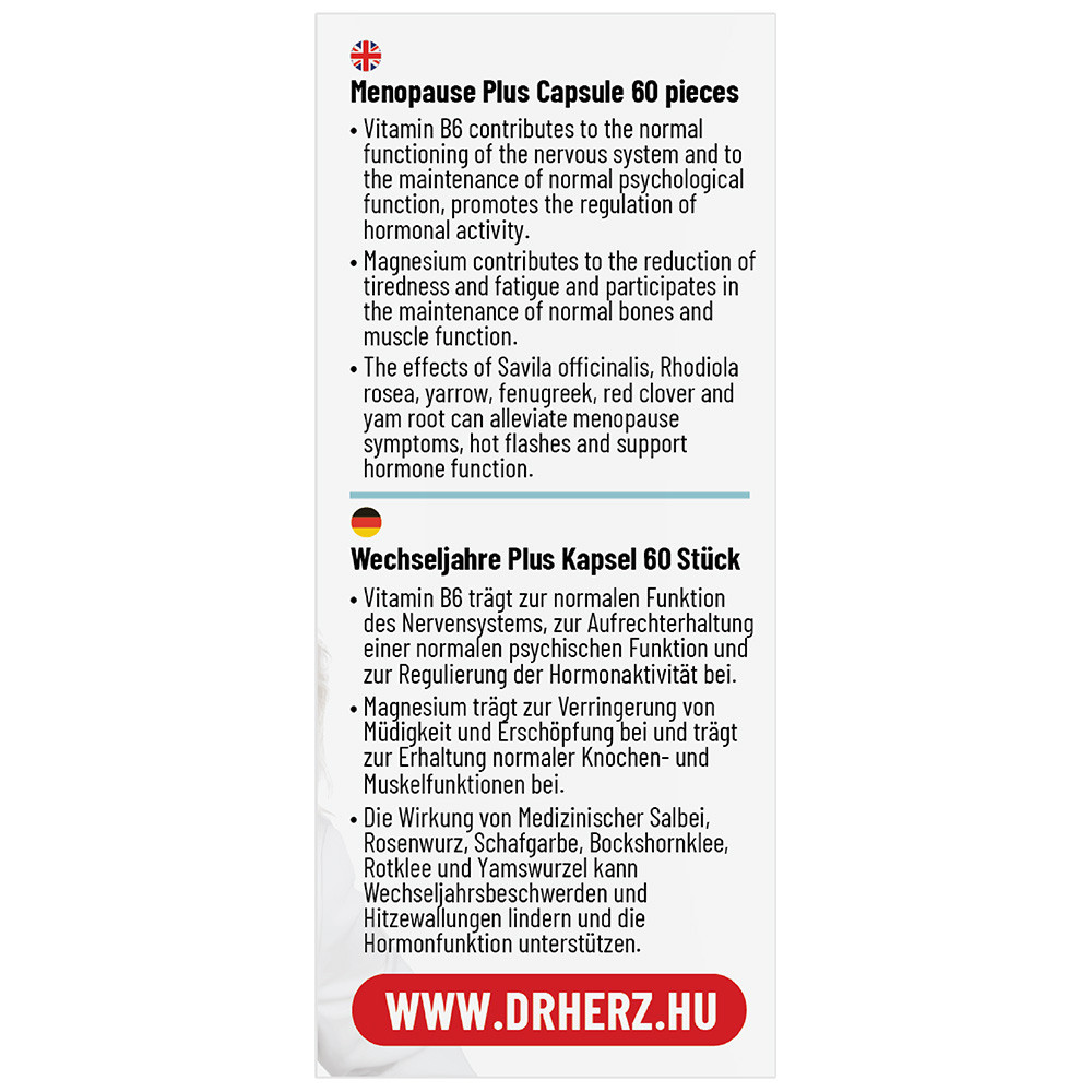 Összetétel: orvosi zsálya őrelmény por (salviae folium), magnézium-oxid, magnézium-laktát (magnézium), aranygyökér kivonat (rhodiola rosea), cickafark őrlemény por (achillea collina), görögszéna őrlemény por, vörös lóhere őrlemény por (trifolium pratense), yam gyökér kivonat (dioscorea villosa), piridoxin-hidroklorid (B6-vitamin) ,tömegnövelő szer (rizskeményítő), csomósodást gátló anyag (mikrokristályos cellulóz), kapszulahéj hidroxipropil-metil-cellulóz