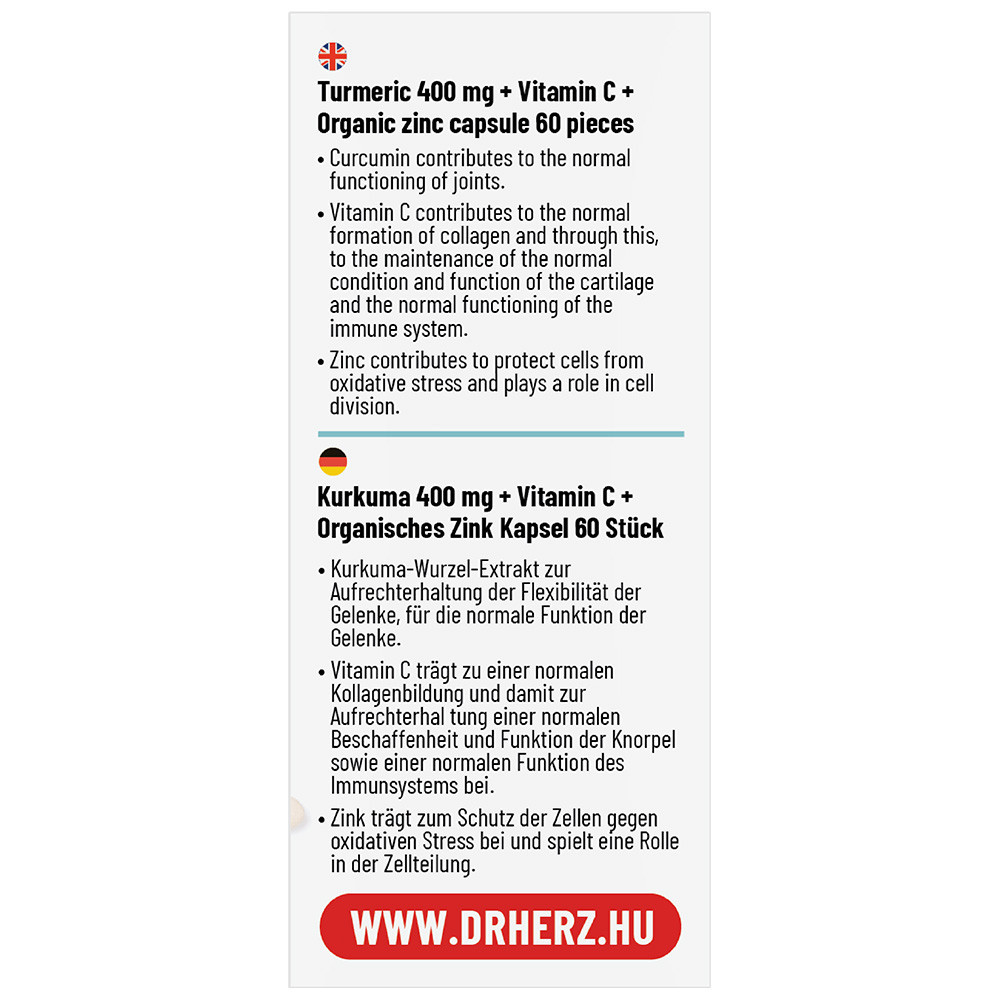 Dr. Herz Kurkuma 400 mg + Gyömbér + C-vitamin kapszula 60db