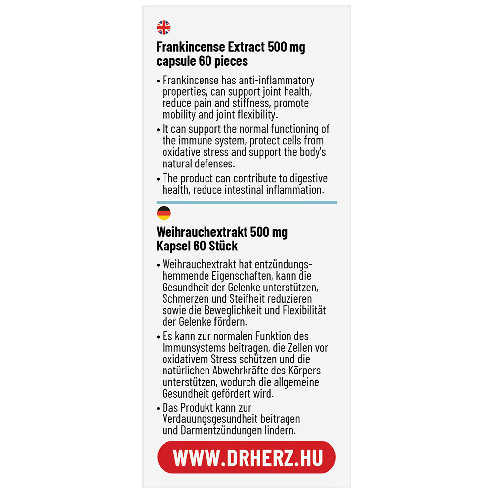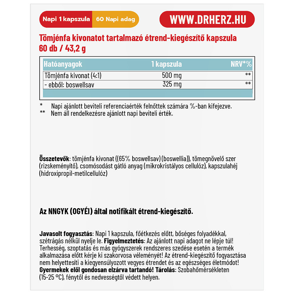 Összetevők: tömjénfa kivonat ((65% boswellsav) (boswellia)), tömegnövelő szer (rizskeményítő), csomósodást gátló anyag (mikrokristályos cellulóz), kapszulahéj (hidroxipropil-metilcellulóz)